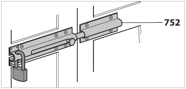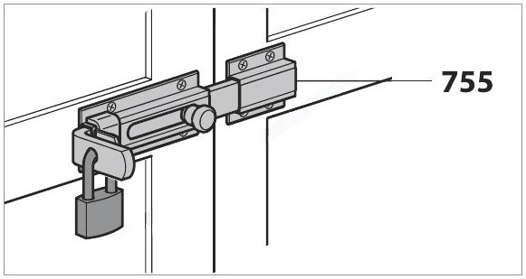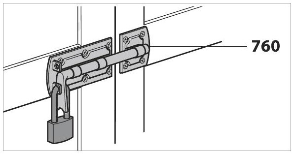 Sliding bolt with 9/16" round rod760-215Padlockable. Lock not included. |